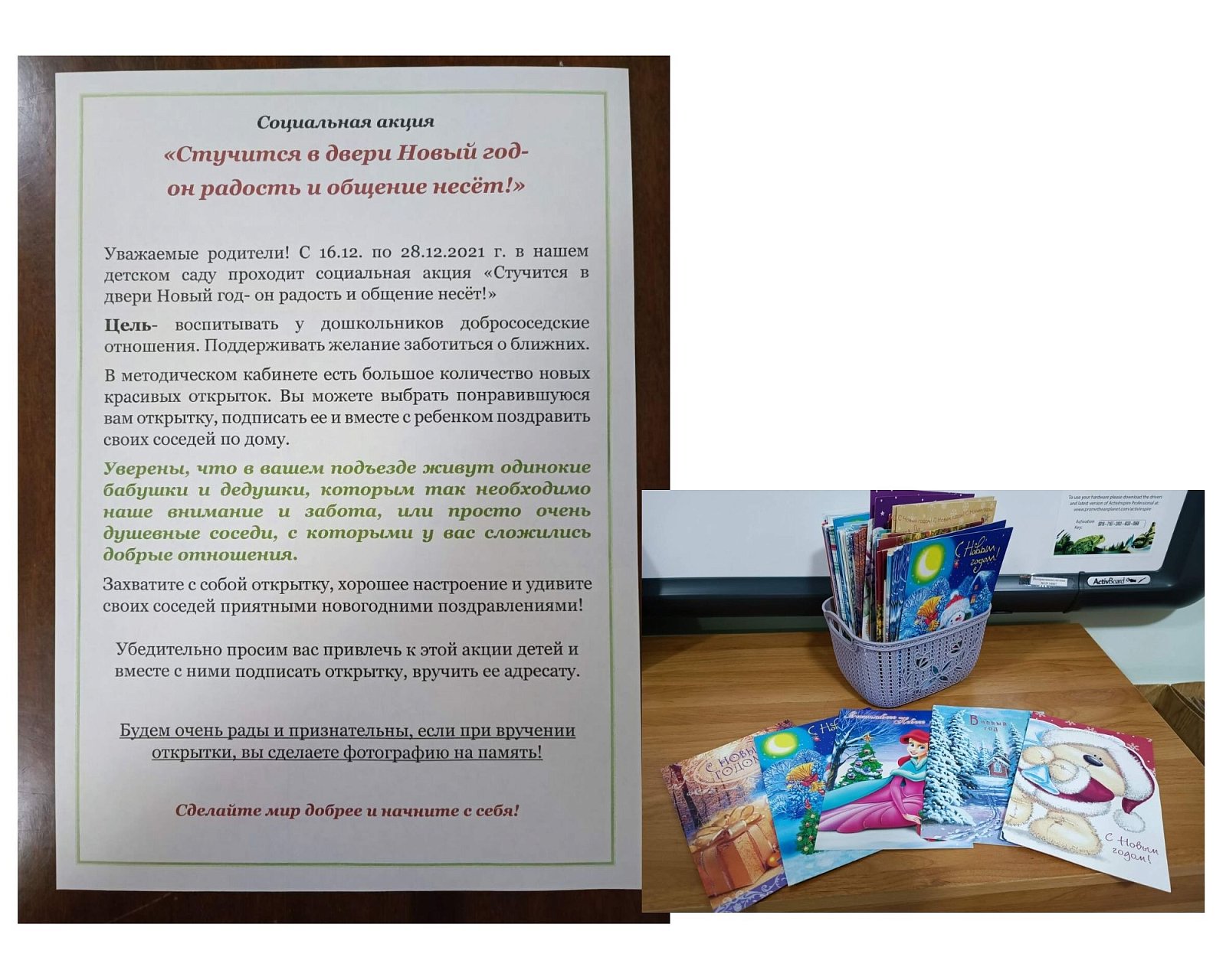 Цель акции: воспитывать у дошкольников добрососедские отношения. Поддерживать желание заботиться о ближних.