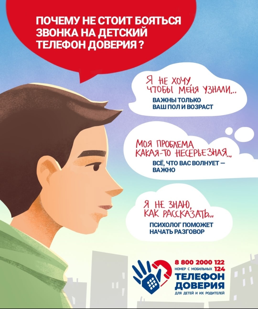 ❗Детский телефон доверия работает ради того, чтобы дети, их родители да и просто люди, неравнодушные к беде живущего рядом ребенка, могли вовремя получить помощь профессионального психолога.