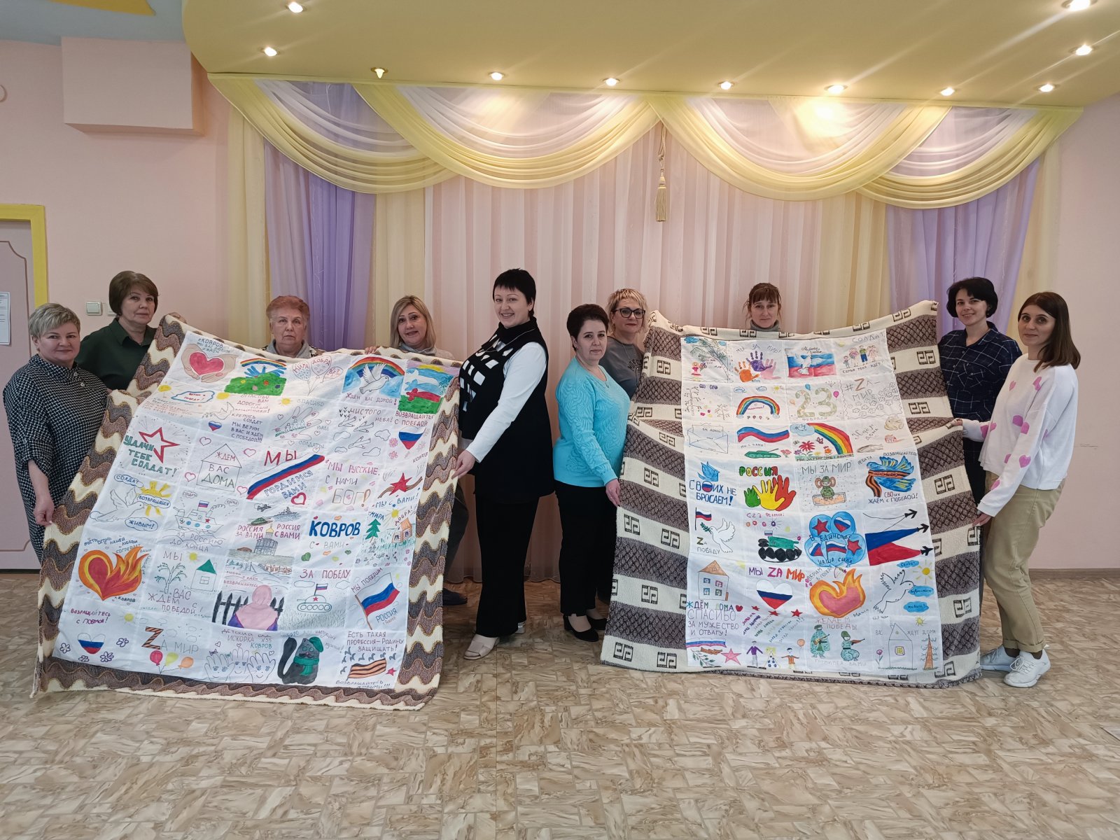 Совместными усилиями мы сшили два лоскутных одеяла, которые отправятся вместе с гуманитарной помощью солдатам в зону СВО.